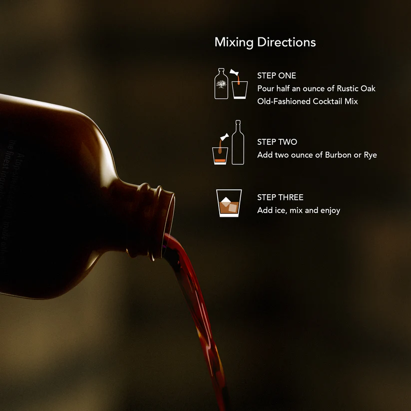 Rustic Oak Old Fashioned Cocktail Mix brings out the bold aromas of your favorite spirits.