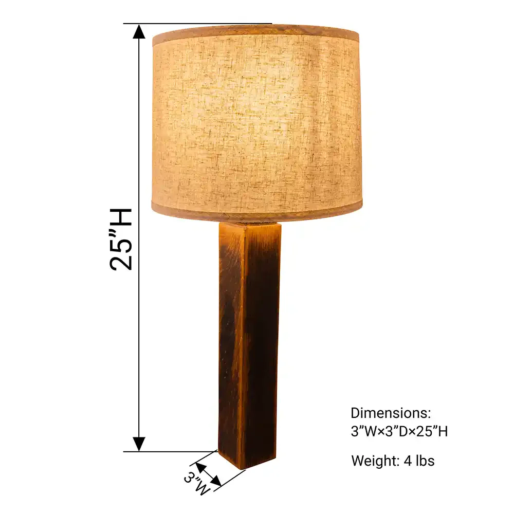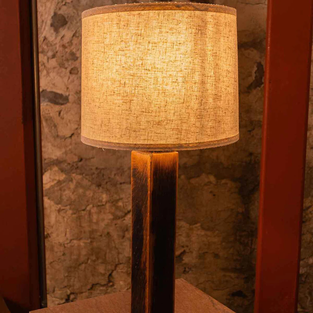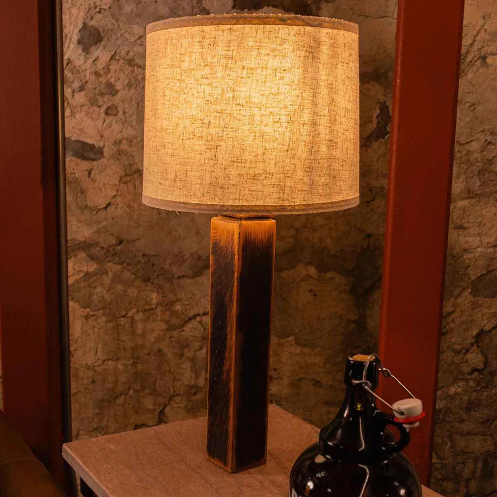 Each lamp carries its own history—marks from the rick house, variations in grain, and exposed char along the edges; no two are exactly the same. Longer exposure to certain weather conditions can oxidize wood grains, causing more of a greyish color.